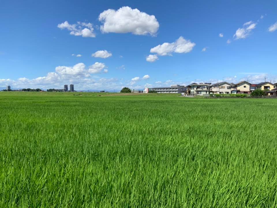 我が家の前は、一面緑のじゅうたんです。